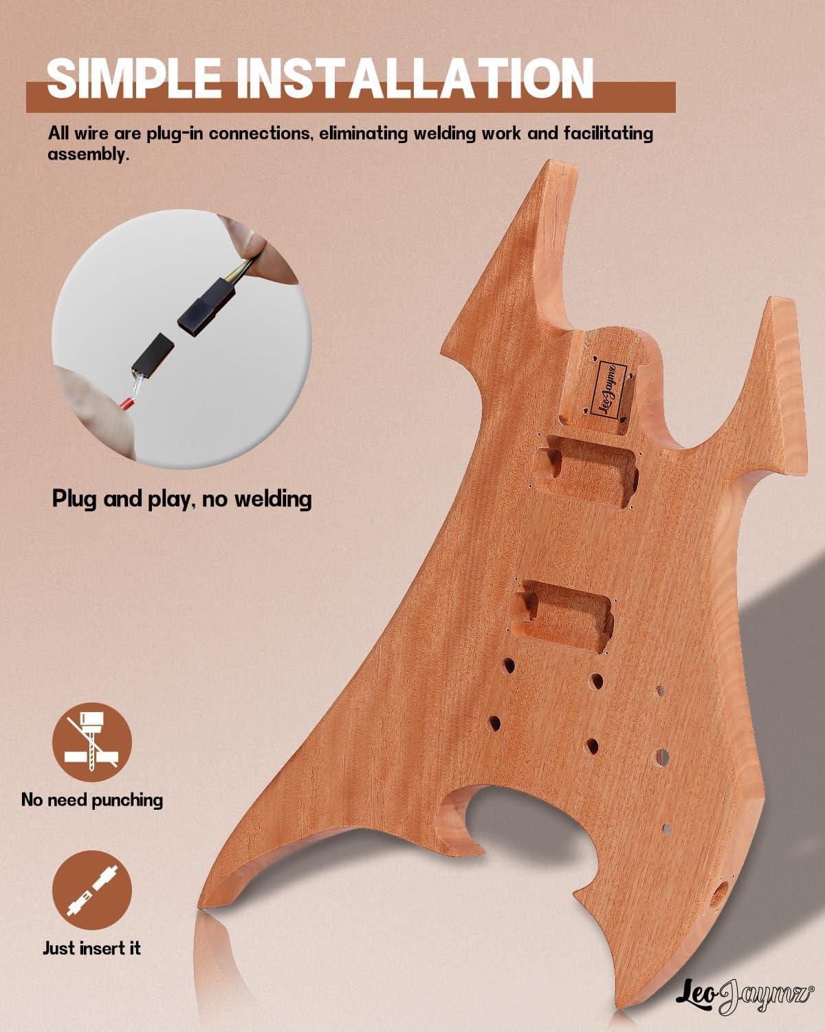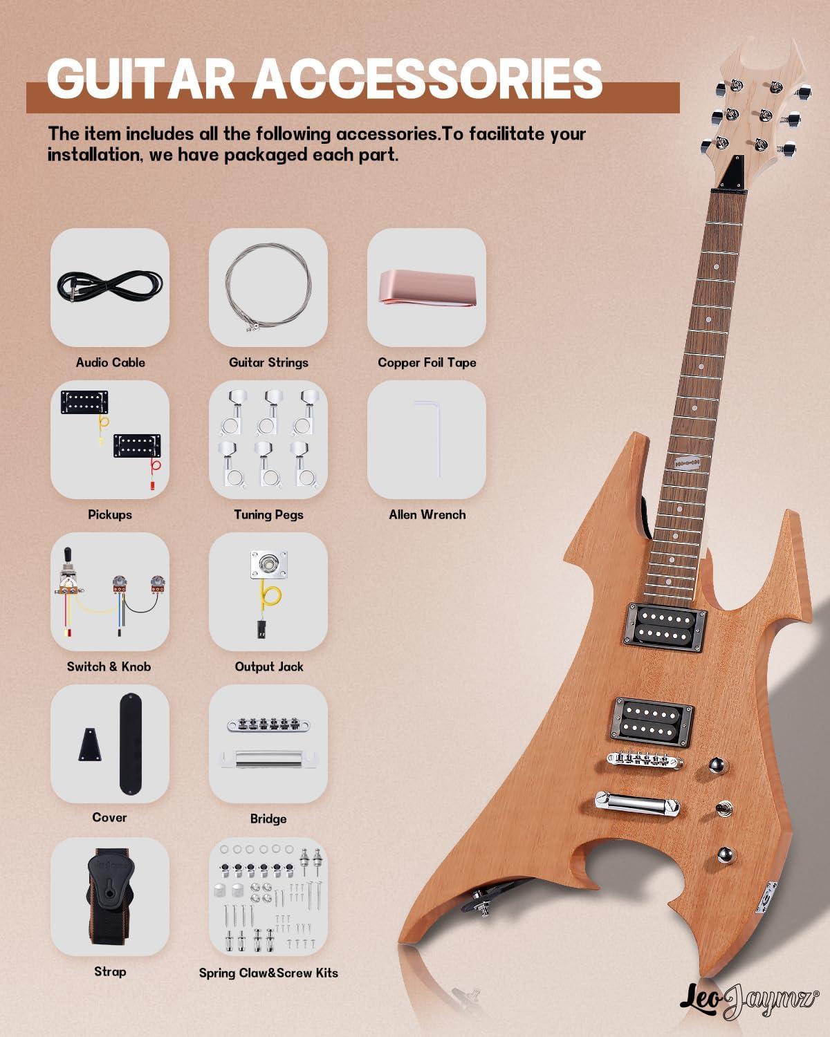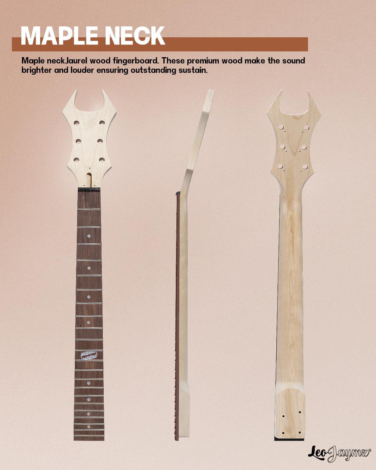 imageLeo Jaymz DIY Electric Guitar Kits with Mahogany Body and Maple Neck  Ebony Fingerboard and All Components Included PSAX