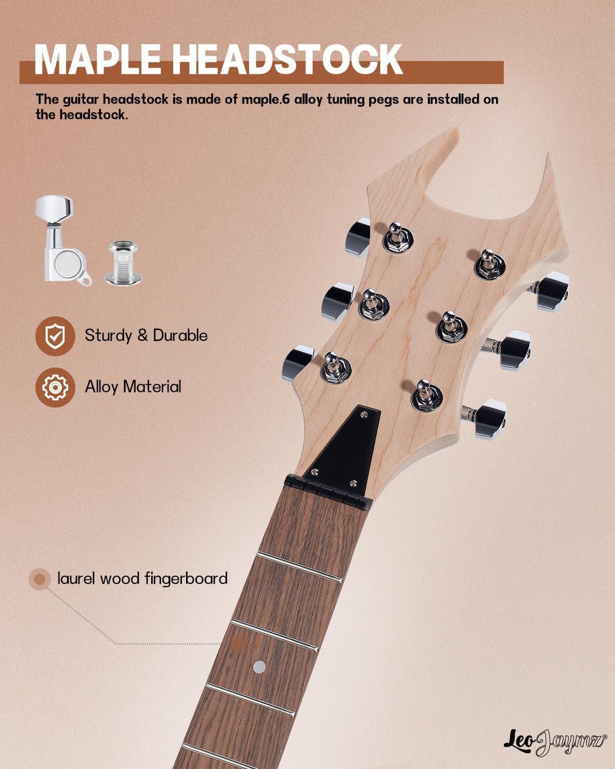 Leo Jaymz DIY Electric Guitar Kits with Mahogany Body and Maple Neck – Ebony Fingerboard and All Components Included (PS)(AX)