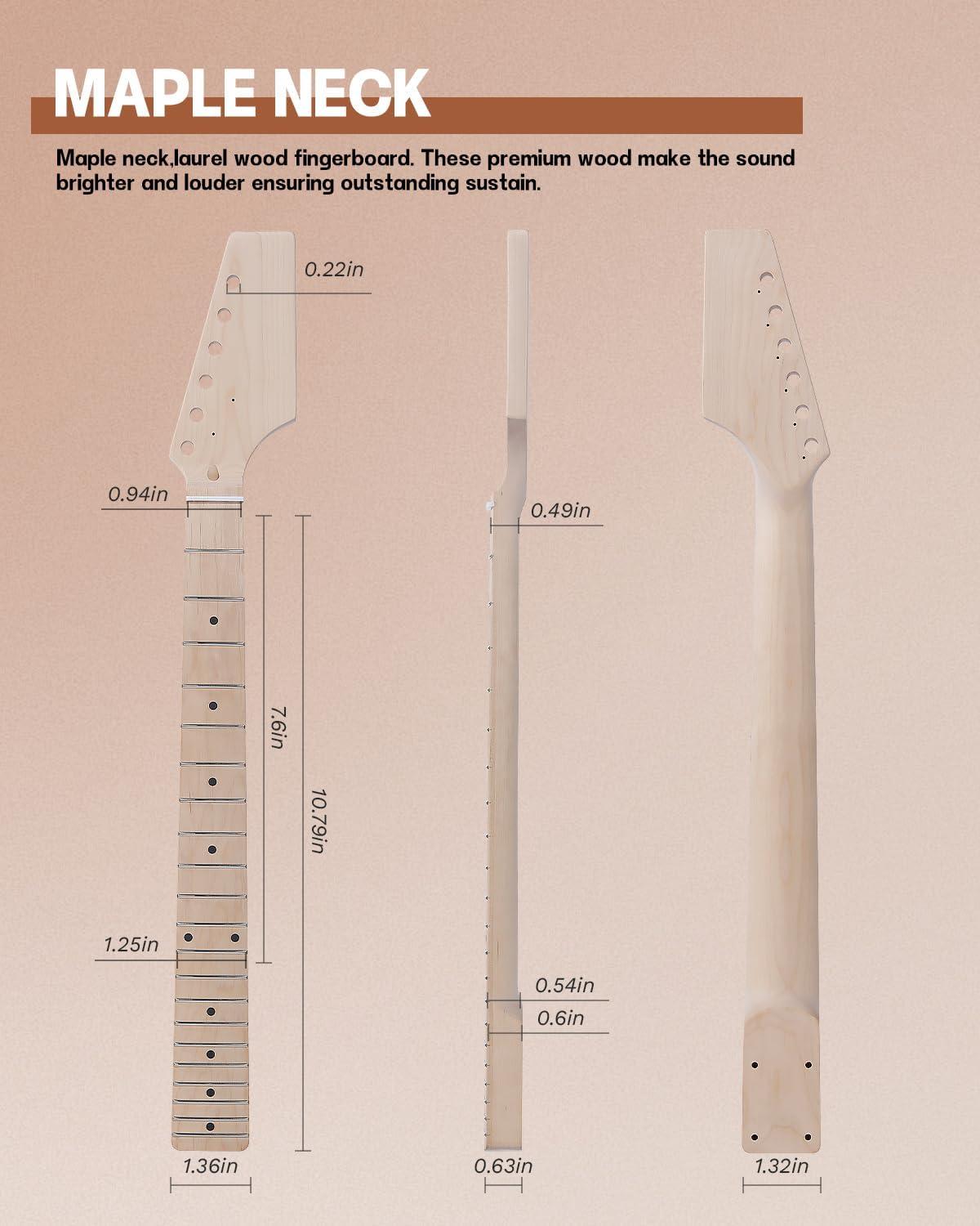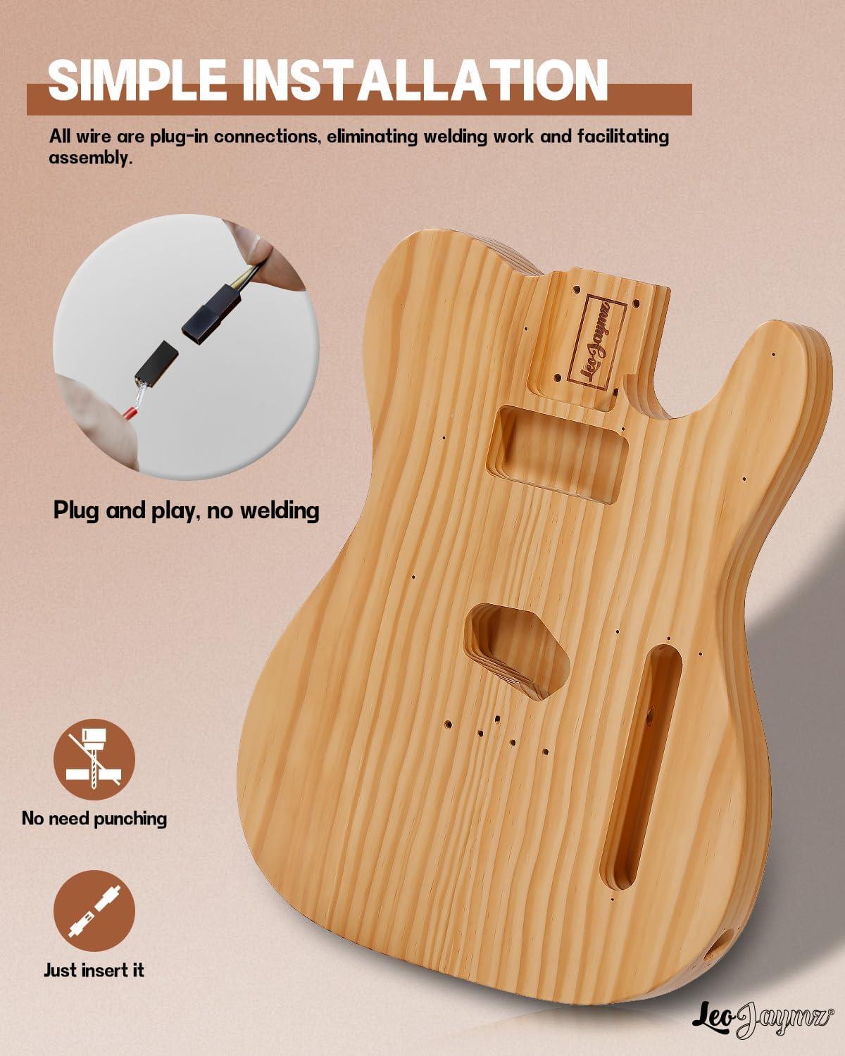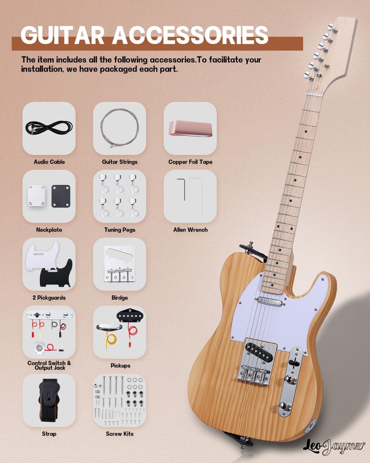 imageLeo Jaymz DIY Electric Guitar Kits with Mahogany Body and Maple Neck  Ebony Fingerboard and All Components Included PSTL Poplar