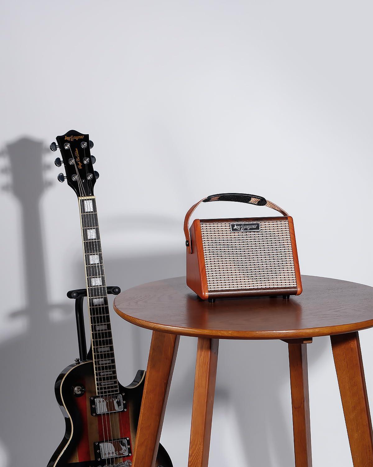 Leo Jaymz 15W Portable Electric Guitar Amp with BT, Rechargeable Battery, Built-in Effects Reverb, Overdrive, EQ, Woodgrain Finish, and 6.35mm Headphone Jack (AG-15)(AG-15)