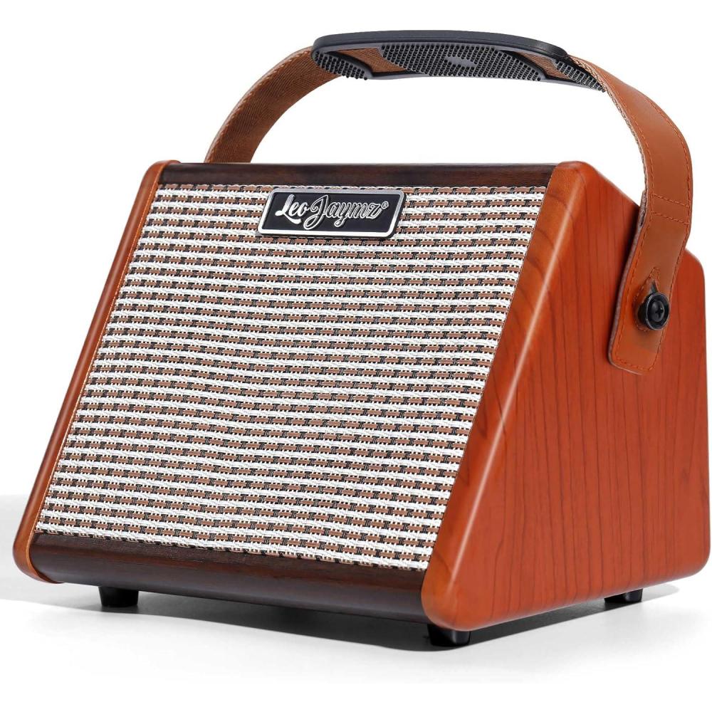imageLeo Jaymz 15W Portable Electric Guitar Amp with BT Rechargeable Battery Builtin Effects Reverb Overdrive EQ Woodgrain Finish and 635mm Headphone Jack AG15AG15